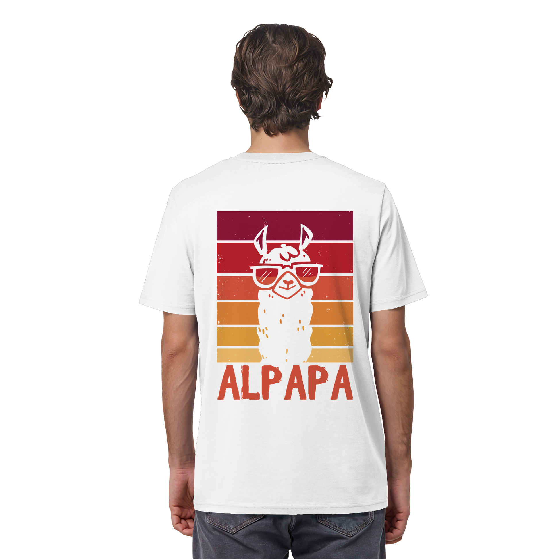 Dieses ALPAPA® Premium - T-Shirt mit Rückendruck vereint bequemen Tragekomfort mit einem bleibenden Eindruck. Die Bio-Baumwolle fühlt sich weich auf der Haut an, sitzt locker und sieht einfach gut aus – egal ob beim Familienausflug, auf der Couch oder bei der nächsten Alpaka-Wanderung. Perfekt als Geschenk, das nicht nur im Schrank liegt, sondern gern getragen wird.
