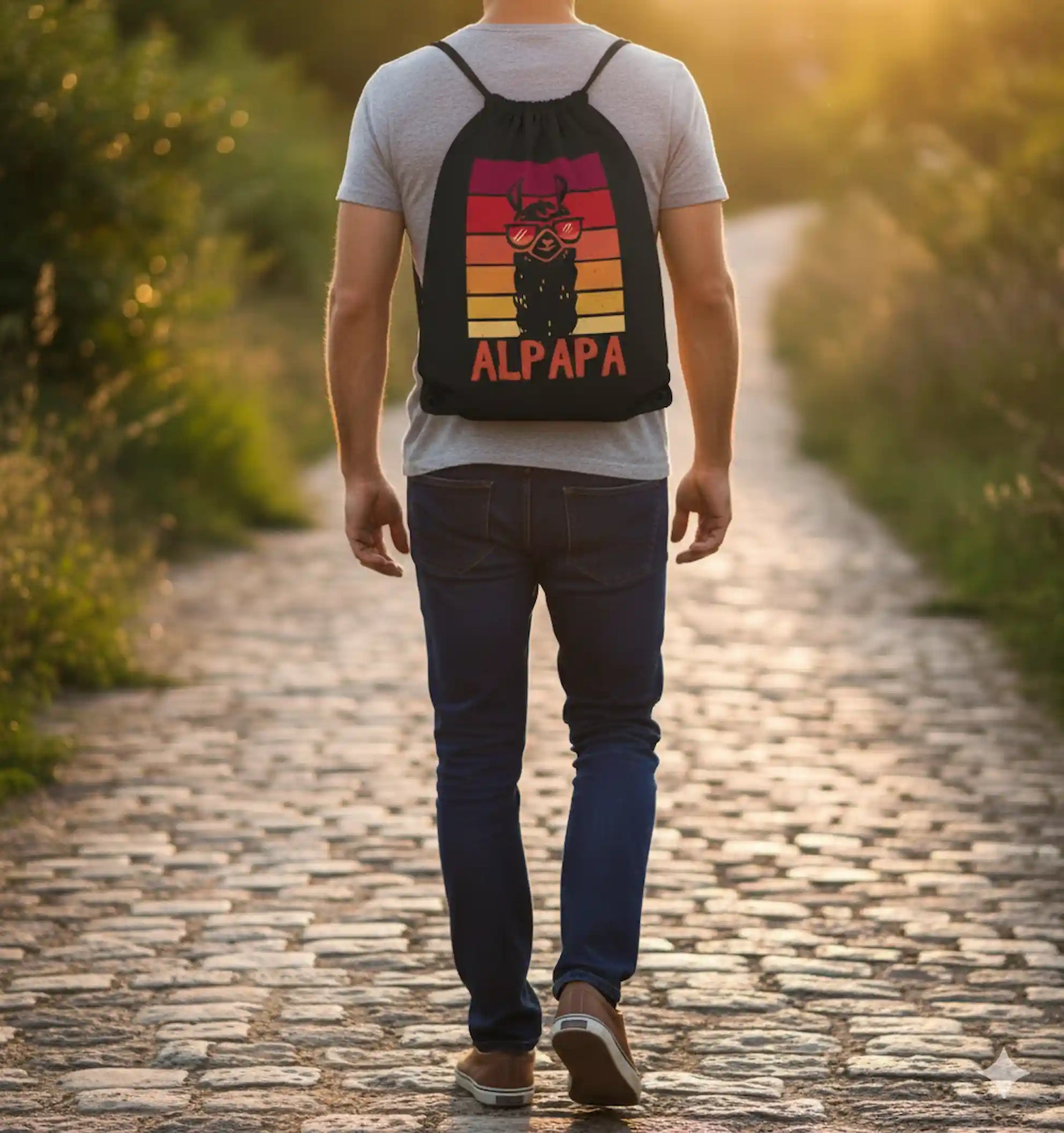 Robust, nachhaltig und mit stabilen Kordeln bleibt er auch dann cool, wenn er richtig vollgepackt ist. Das ALPAPA® Logo auf der Front sorgt für den unverwechselbaren Markenauftritt – ein Augenzwinkern inklusive.